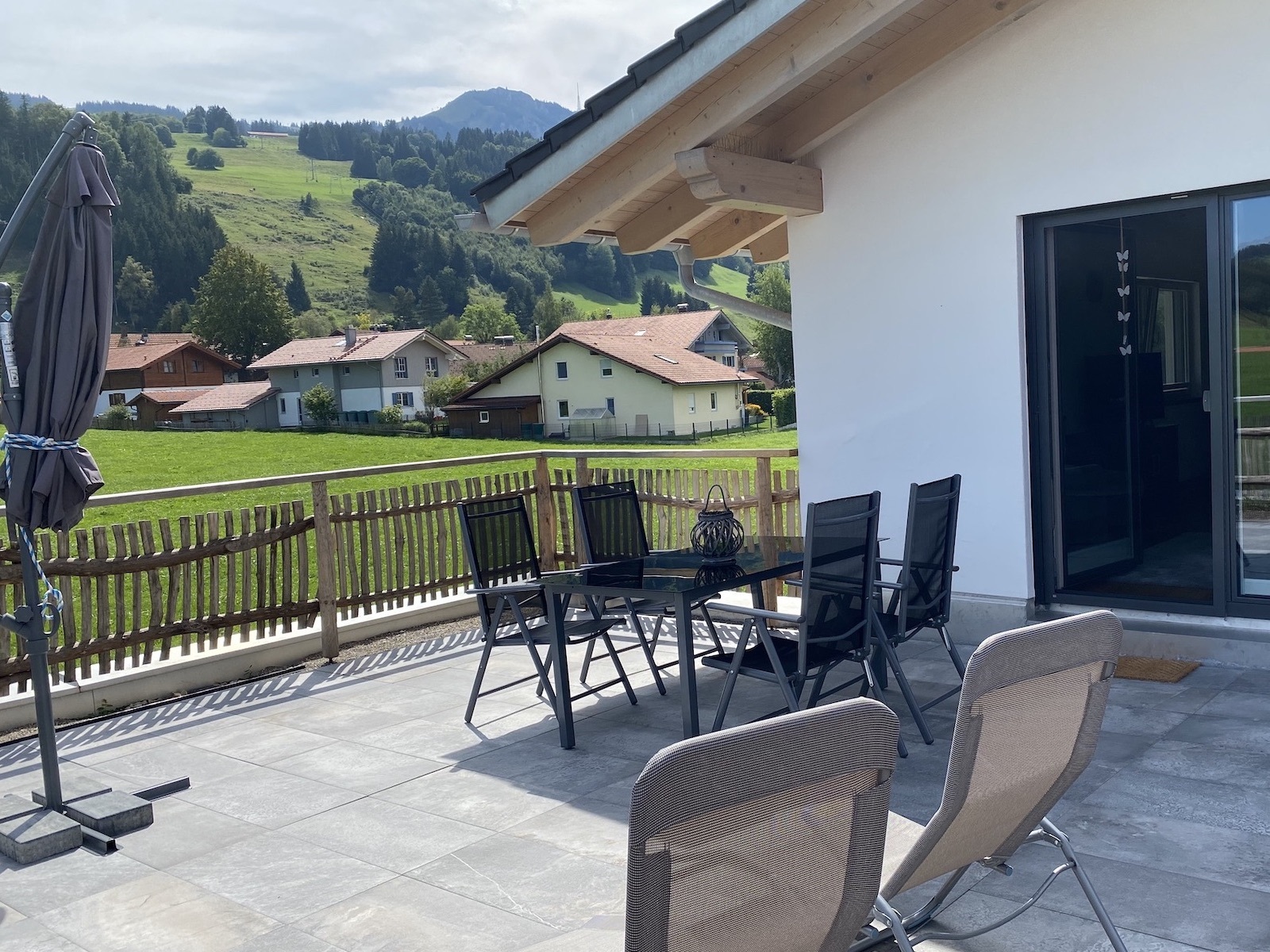 Genießt im ersten Stock unsere neu erbaute, moderne Wohnung mit hochwertiger Ausstattung und gemütlichem Ambiente. Die große Ost-Terrasse lädt bei Morgensonne zum Frühstück und der herrliche Weitblick auf das Allgäuer Panorama mit Sicht zum Grünten zum Träumen ein.